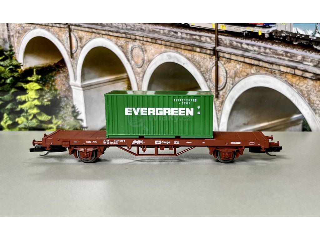 Kontejnerový vůz Lgs ČD "START" s 20‘ kontejnerem Evergreen , Ep VI