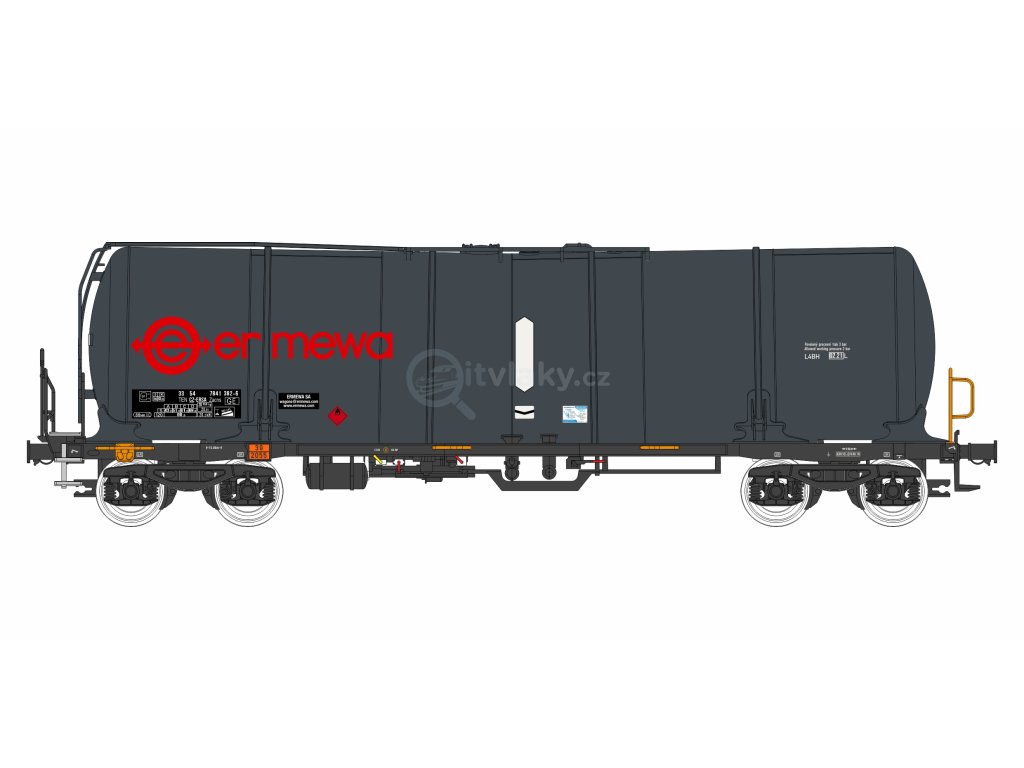 Předloha: 4-osý cisternový vůz řady Zacns o objemu 88 m3 určené pro převoz vycházející z konstrukce společnosti Legios, následně Nymwag CS.