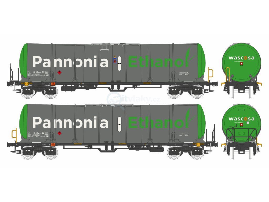 Předloha: 4-osý cisternový vůz řady Zacns o objemu 98 m3 určené pro převoz vycházející z konstrukce společnosti Legios, následně Nymwag CS.