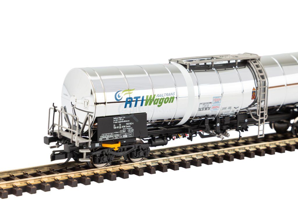 Čtyřnápravový chemický cisternový vůz v měřítku 1:120 zaujme volně stojícími žebříky, madly a vysoce lesklou chromovou cisternou v designu GATX.