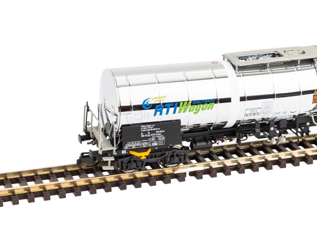 Novinka 2026: Chemický cisternový vůz (Chemoil) v chromovém provedení s nápisem RTIpro modelovou železnici TT Era VI