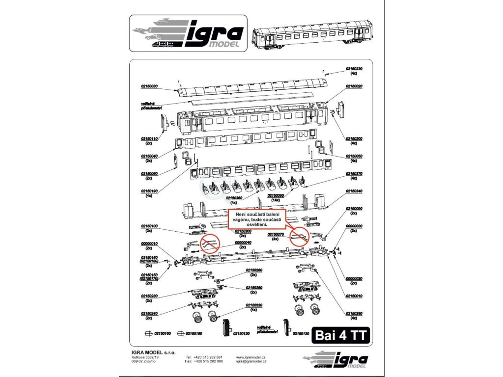 K vozům Bai je k dodání i osvětlení od firmy Igra Model, jehož součástí jsou i plíšky, které byly omylem již v manuále k vozu.