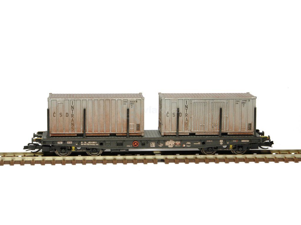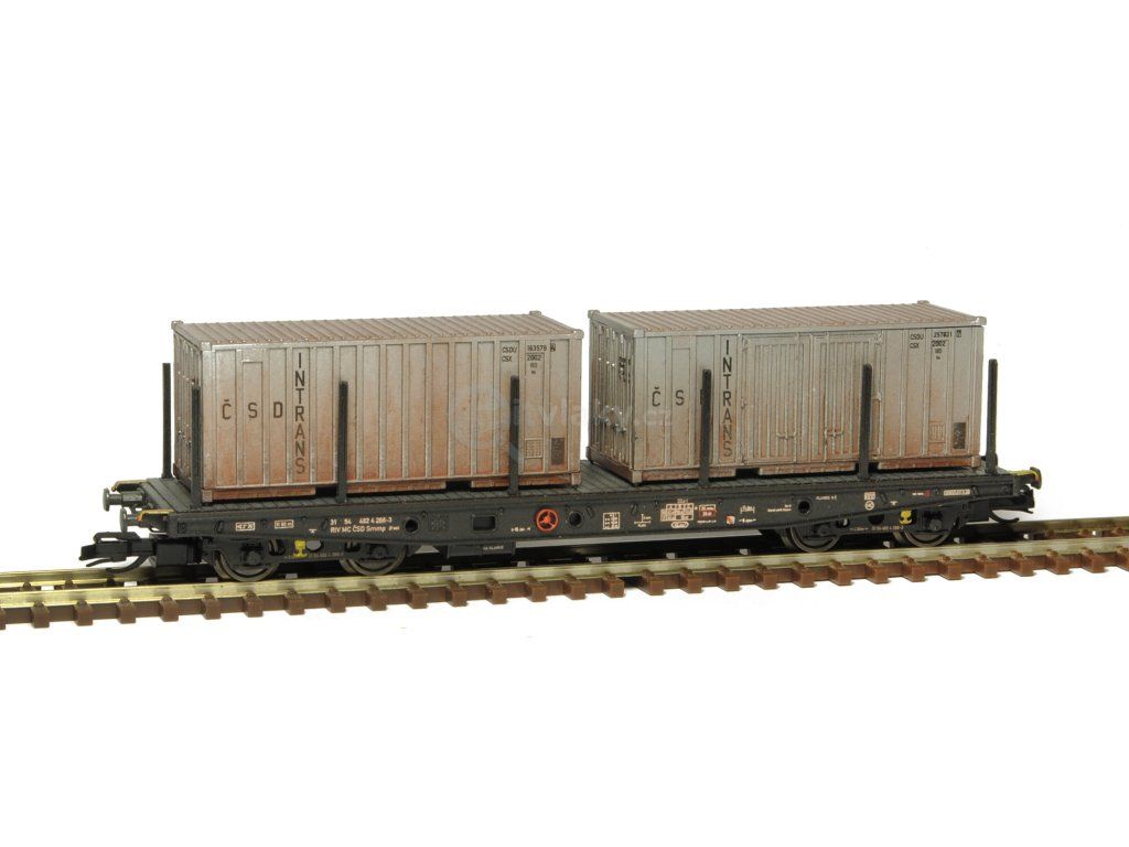 Kompletní stavebnice plošinového vozu Smmp 10 s kontejnery Gtt. Obsahuje plastikové výlisky na sestavení modelu včetně kinematik, spřáhel a kvalitních soustružených kovových dvojkolí, kovové lepty, závaží a obtisky. Provozovatel Československé dráhy, IV. epocha.