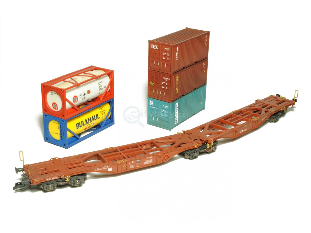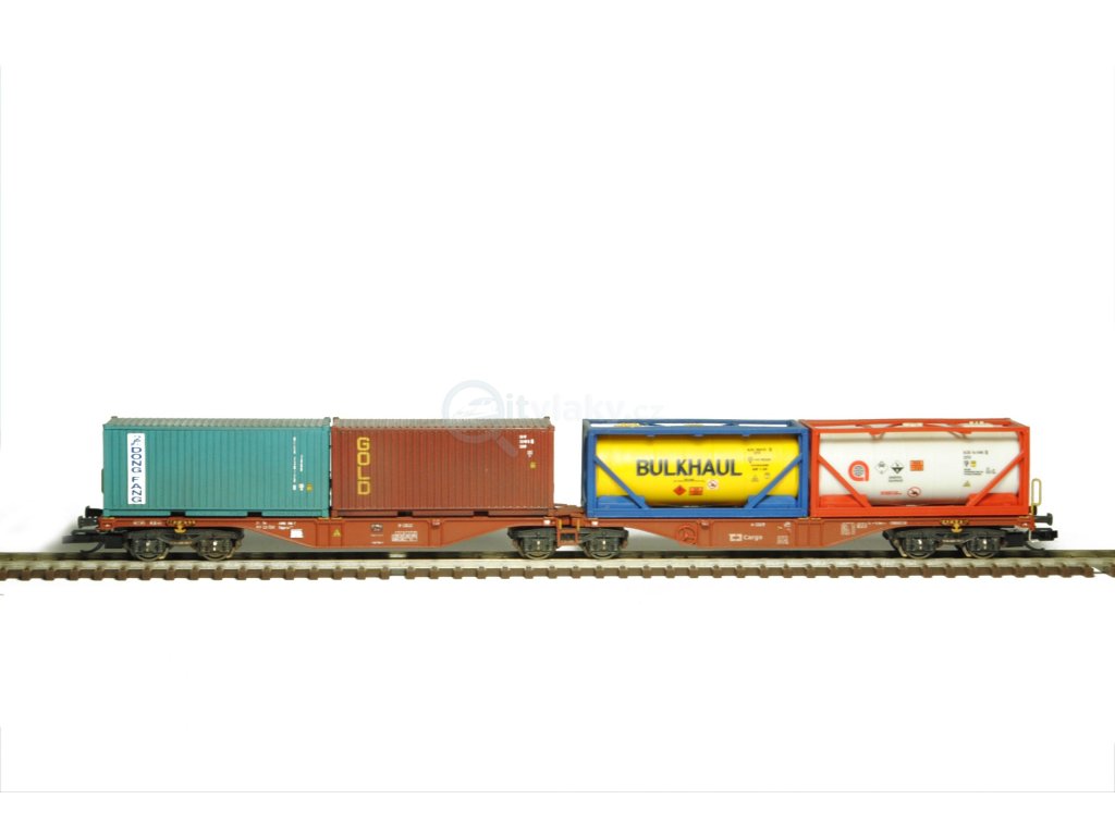 Kompletní stavebnice článkového kontejnerového vozu řady Sggrss 55. Vůz je opatřen nákladem dvou kotlových kontejnerů rozměru ISO 1C a dvou skříňových kontejnerů ISO 1C. Obsahuje probarvené plastikové výlisky na sestavení modelu včetně kinematik, spřáhel a kvalitních soustružených kovových dvojkolí, kovové lepty, závaží. Součástí obtiskové sady jsou dvě provozní čísla vozu a volitelná třetí verze nápisů pro skříňový kontejner. Kloubové spojení vozu je konstruováno s rezervou pro bezproblémovou průjezdnost nejmenšího poloměru oblouku R 310. Epocha VI., provozovatel ČD cargo.