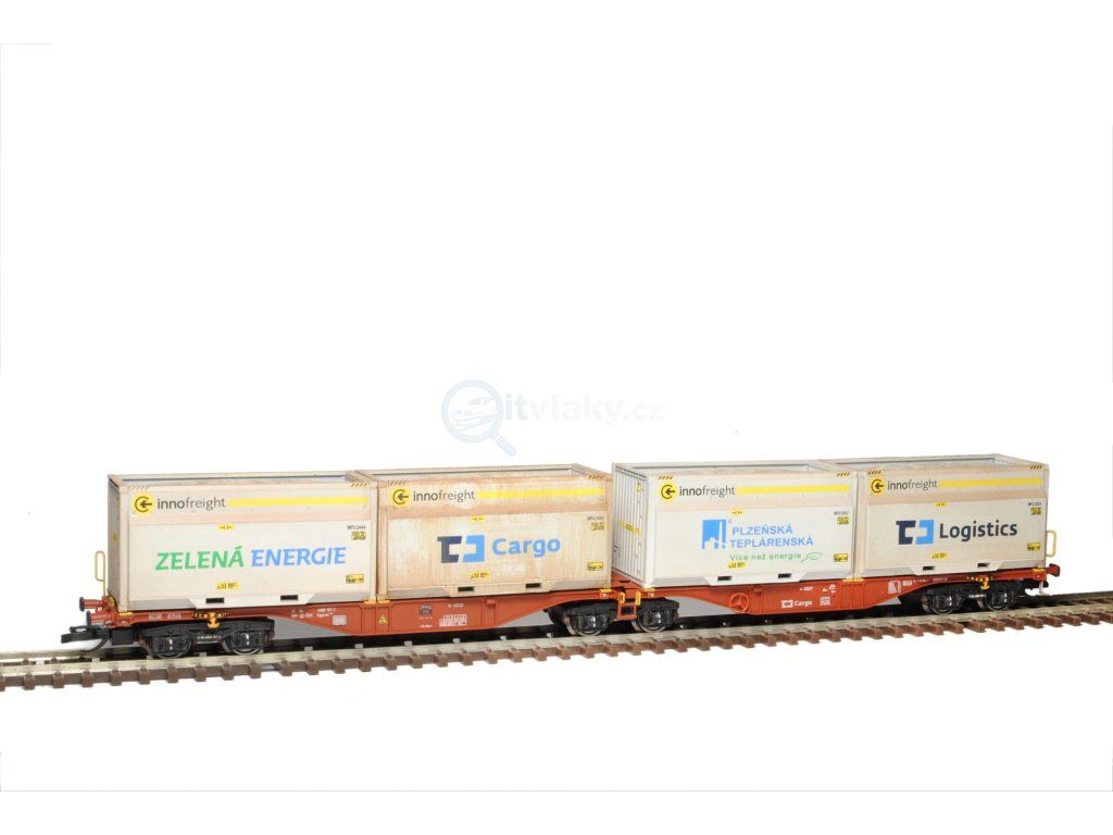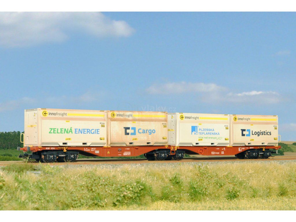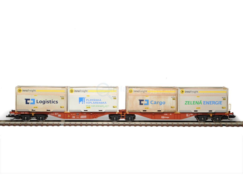 Kompletní stavebnice článkového kontejnerového vozu řady Sggrss 55. Vůz je opatřen kontejnery Woodtainer XXL. Obsahuje probarvené plastikové výlisky na sestavení modelu včetně kinematik, spřáhel a kvalitních soustružených kovových dvojkolí, kovové lepty, závaží. Kloubové spojení vozu je konstruováno s rezervou pro bezproblémovou průjezdnost nejmenšího poloměru oblouku R 310. Epocha VI., provozovatel ČD Cargo.
