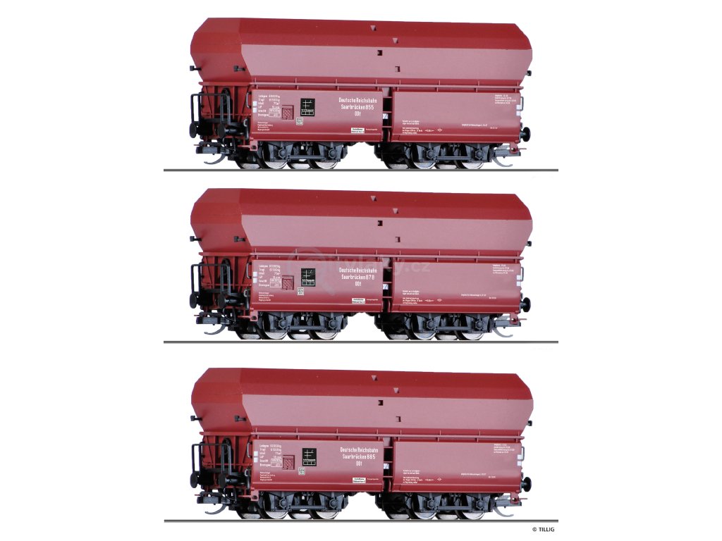 Souprava nákladních vagónů DRG, skládající se ze tří samovykládacích vagónů v Saarbrückenu, II. éra Model v měřítku TT.