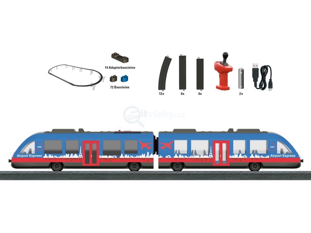 Vlak měří 48 cm, lokomotiva je nabíjená přes USB kabel.