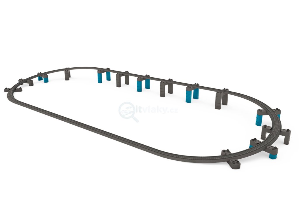 12 obloukových kolejí + 12 rovných + kostky pro zvýšení trati.