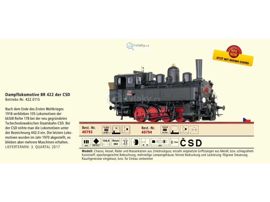 ARCHIV H0 - parní lokomotiva 422.0115 ČSD ,,Bejček,, / Brawa 40792