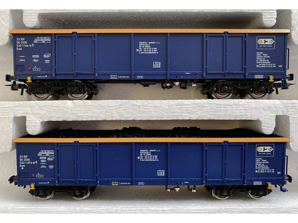 Set se dvěma otevřenými nákladními vozy typu Eaos, které pronajímá společnost Axbenet polskému poskytovateli logistických služeb Chem Trans Logistic.