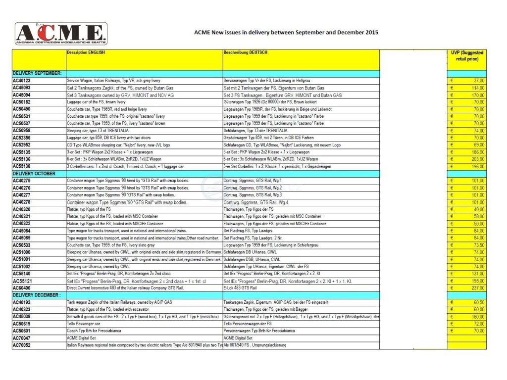 Výrobce lokomotiv a vozů velikosti H0 z Itálie. Kvůli vysoké ceně poštovného a malé nabídce českých modelů se objednává u výrobce jen cca 4x za rok.