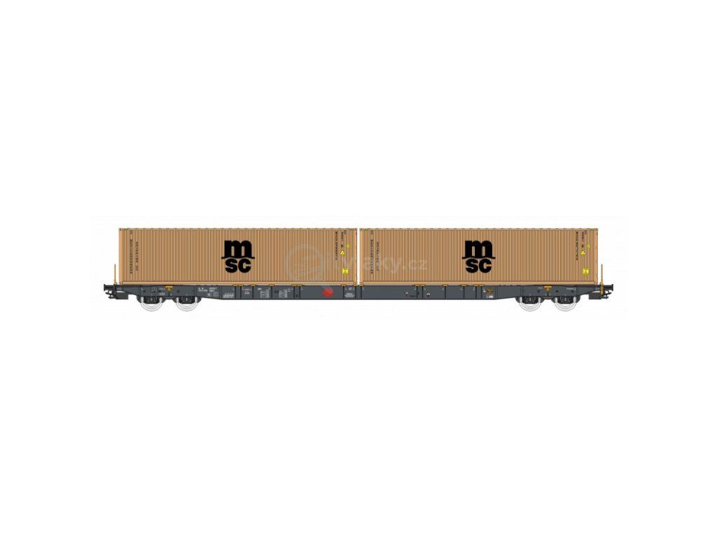 Vůz Sggnss určený na přepravu kontejnerů. Sggnss je s kontejnery 2x MSC, vyroben dle reálných proporcí. Vagón je kompatibilní s kontejnery značky IGRA Model.