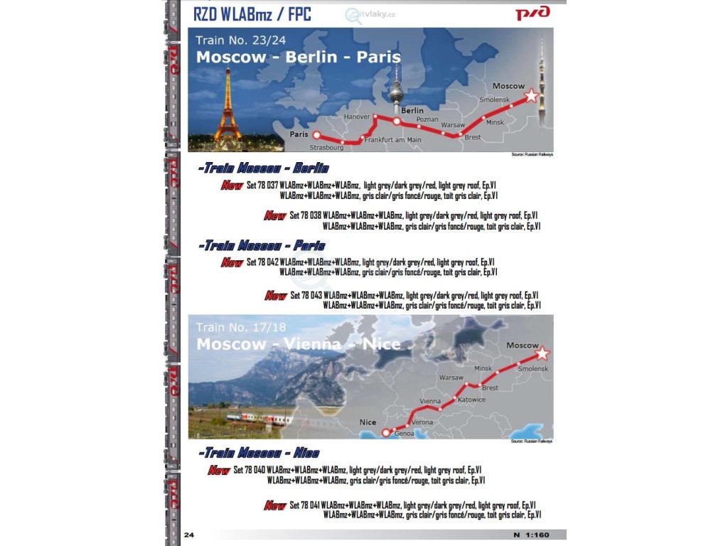 Schlafwagen-Set A - Moskau - Nizza, Bauart WLABmz der staatlichen Bahngesellschaft RŽD