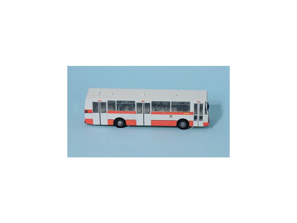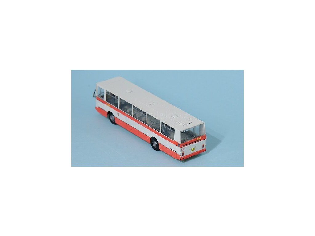 Hotový model městského autobusu Karosa B731 v provedení pražského Dopravního podniku v provedení z období do roku 1996 (bílá barva, starší loga DP). Autobus obsahuje všechny detaily včetně stěračů. Jedná se přímo o autobus vyobrazený na fotografiích. Bez zrcátek.