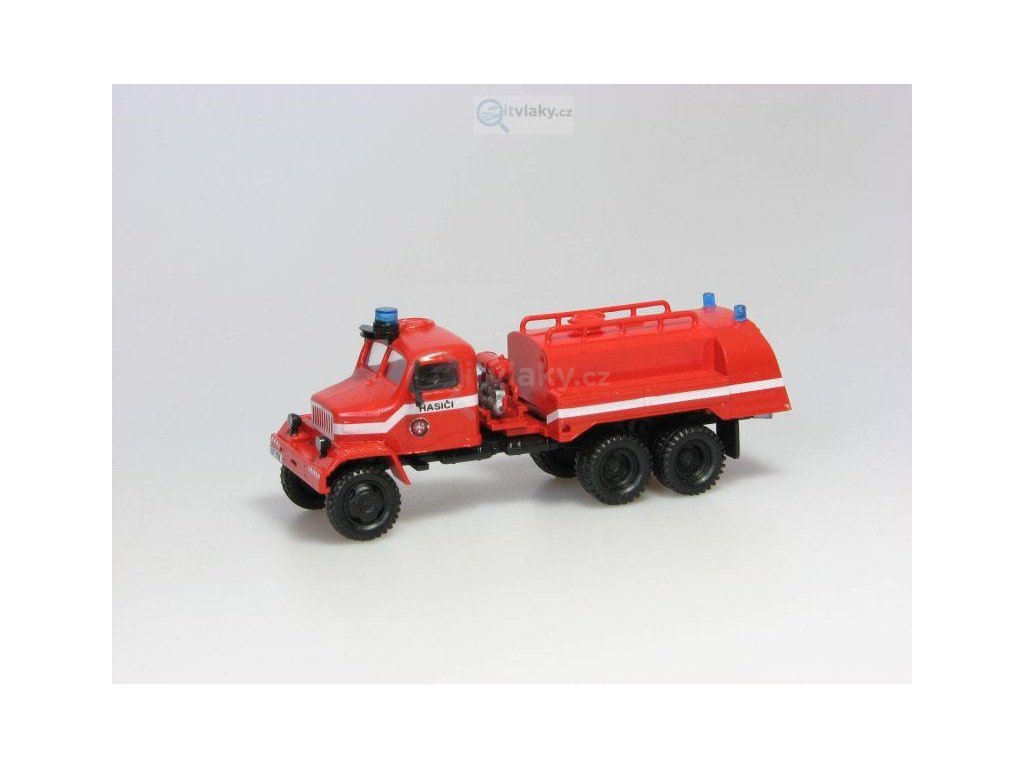 Hasičská cisterna SDH Kryštofovy Hamry. Stavebnice obsahuje plastikové výlisky, majáky, sadu SPZ a sadu obtisků.