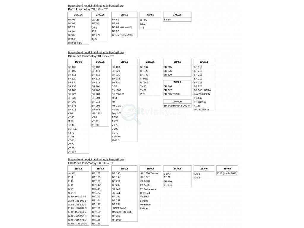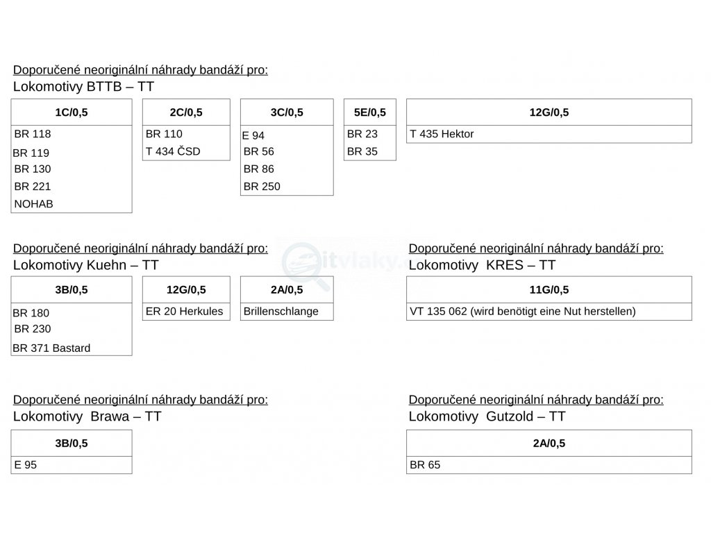 - katalogového čísla bandáže (viz. přiložené obrázky s některými modely Roco, Tillig a Piko)