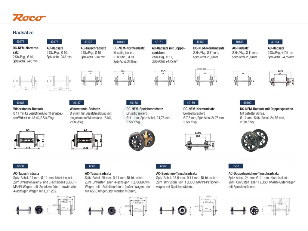 Bandáže pro dvojkolí lokomotiv Roco. 10 ks v balení