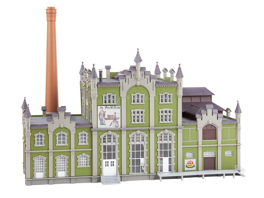 Reprezentativní budova pivovaru s ozdobným cimbuřím a věžovými arkýři ve vilémském stylu. Centrální varnu a strojovnu lemují dvě boční komerční přístavby. Model doplňuje nakládací rampa, komín namontovaný vzadu, čtyři měděné varné kotle pro interiér a dekorace z dolnobavorského pivovaru Peschl.