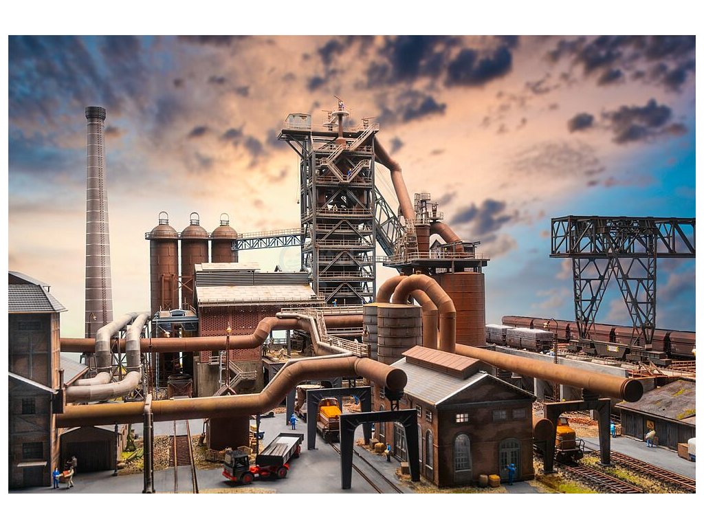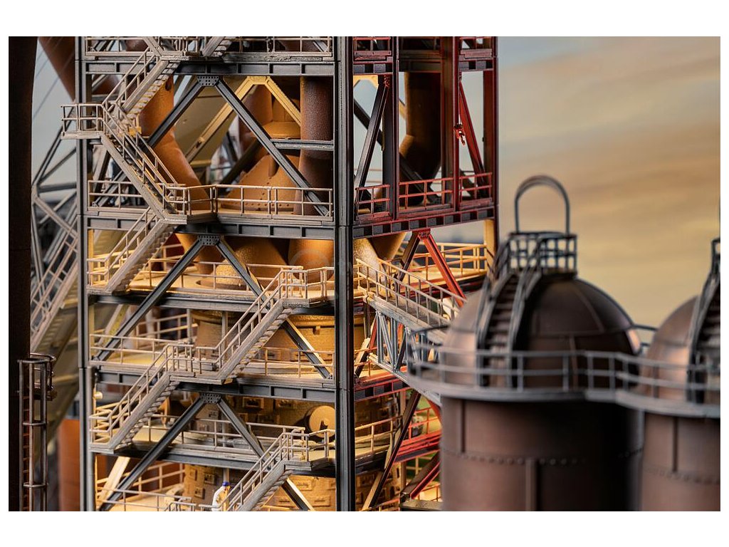 Pro náš model k výročí 2026 oživujeme průmyslovou historii! Inspirovali jsme se ocelárnou Meiderich v Duisburgu, kterou založil August Thyssen na začátku 20. století. Surové železo se zde vyrábělo po celá desetiletí - až do roku 1985, kdy vyhasla poslední z pěti vysokých pecí. Model znovu vytváří legendární vysokou pec č. 2 závodu a do světa modelů přináší uhelný a ocelářský průmysl. Technicky a historicky fascinující téma, které záměrně jde daleko za hranice našich běžných nových produktů k našemu 80. výročí. Zároveň stavíme most k dalšímu historickému milníku: 75 letům Evropského společenství uhlí a oceli. Evropské společenství uhlí a oceli, jádro dnešní EU, kdysi otevřelo bezcelní přístup k uhlí a oceli - a tím vydláždilo cestu k hospodářskému sjednocení a trvalému míru v Evropě. Model s historií, vizí a váhou - pro sběratele, nadšence do historie a technologií a pro každého, kdo hledá výzvu! Model zahrnuje vysokou pec s otočným rámem, šikmý výtah s navijákem, lapač prachu, rozdělovač ve tvaru Y s příslušnými trubkami, plynovou hořák, slévárnu s portálovým jeřábem a malý denní bunkr.