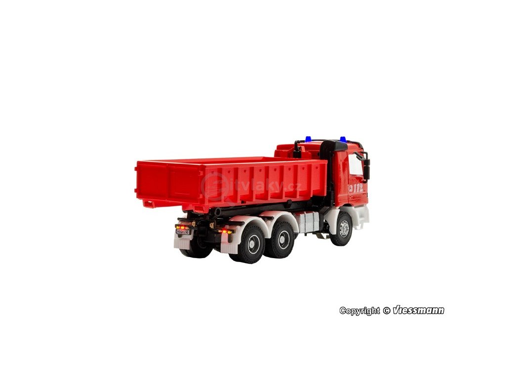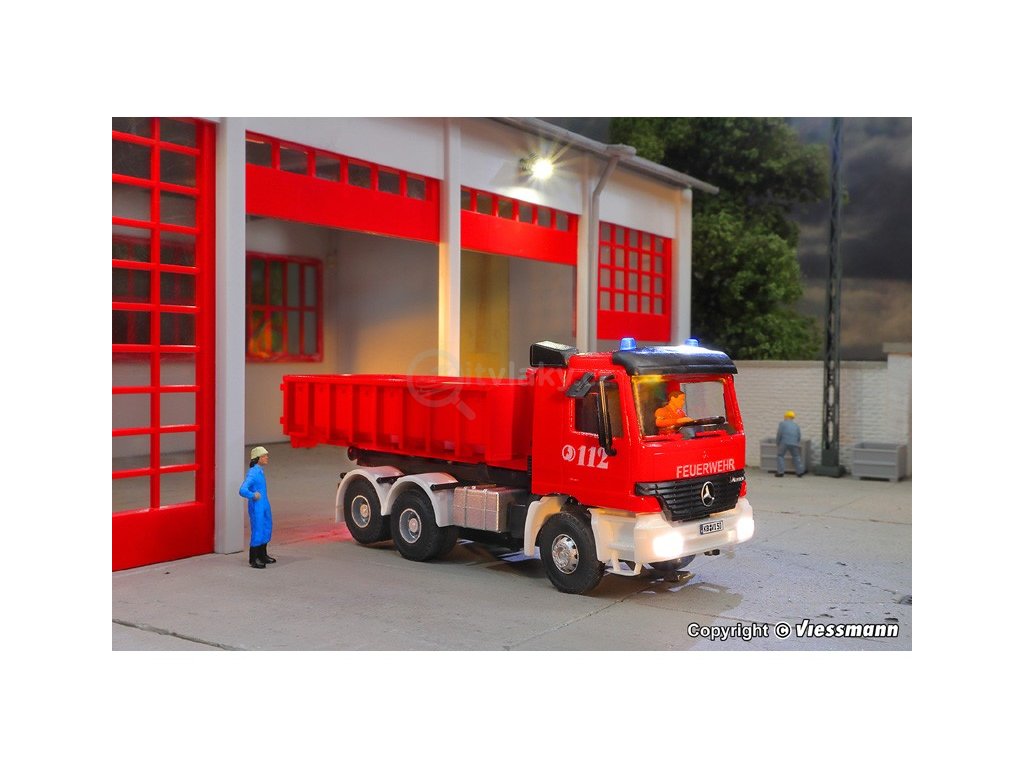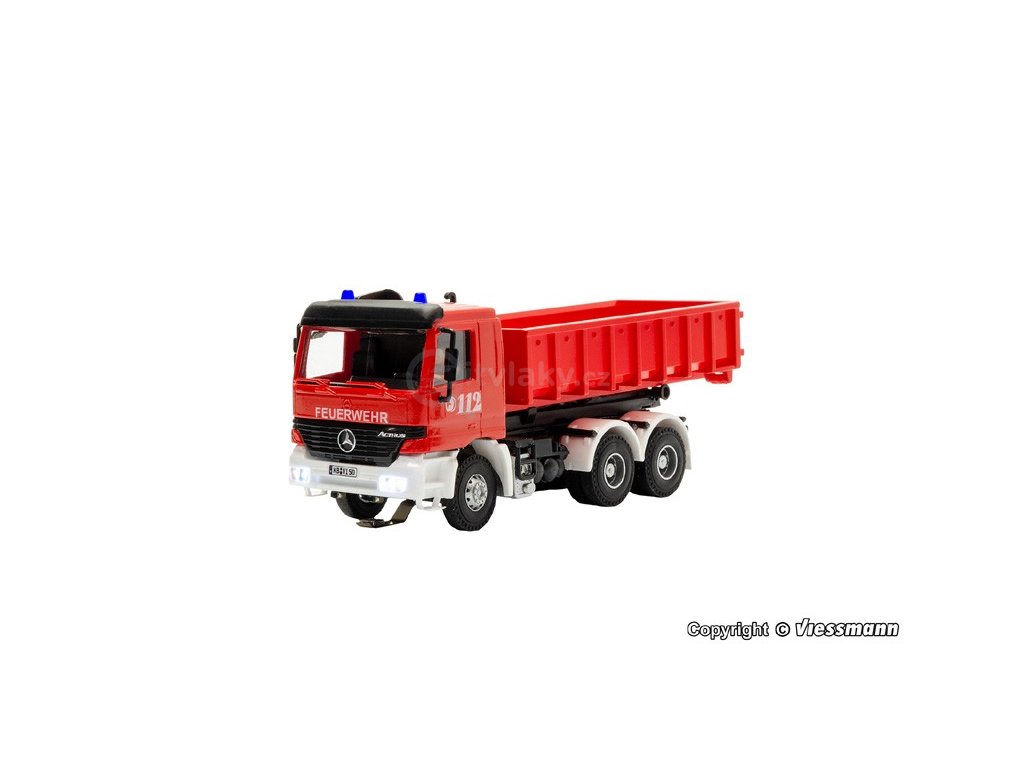 H0 - Hasičská jednotka MB ACTROS 3-nápravový funkční model / VIESSMANN 8050