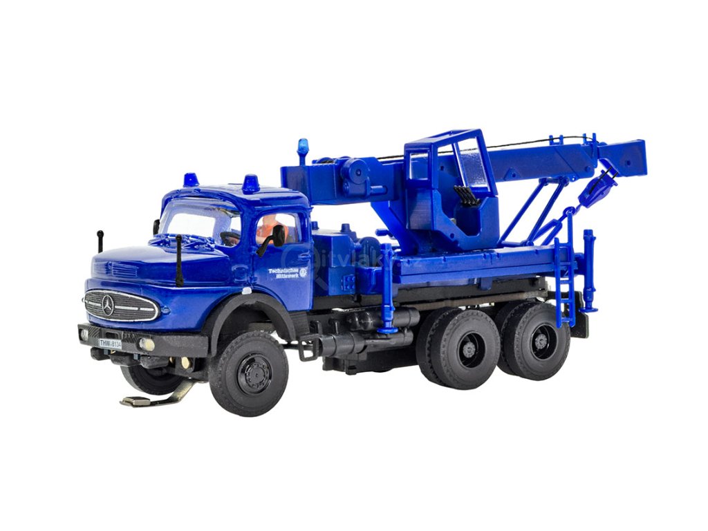 H0 - THW MB Rundhauber 3-nápravový vyprošťovací jeřáb s otočnými majáky, základní, funkční model / Viessmann 8072