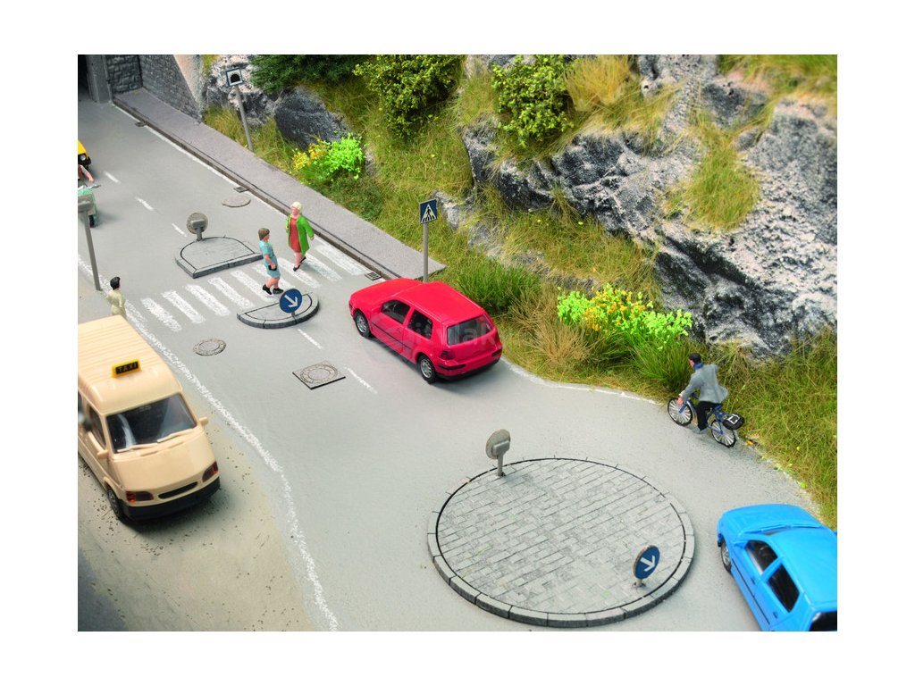 Laserový NOCH »Set dopravní ostrůvek« se ideálně hodí pro realisticky navrženou dopravní krajinu. Cestou projíždějí auta, troubící kamiony, lidé na kolech a dokonce i chodci. Sada »Traffic Island Set« je také ideální pro udržení pořádku v jakékoli modelové krajině v provozu.