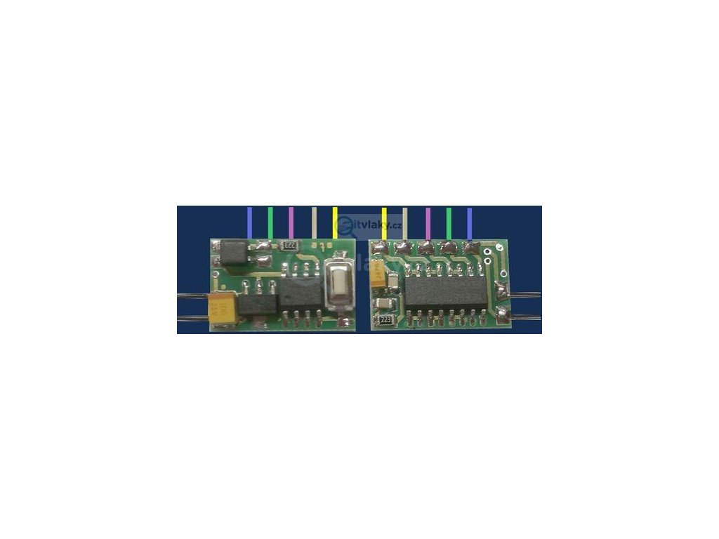 Dekodér je určen pro spínání LED osvětlení, osvětlení horního reflektoru lokomotiv, osvětlení stanoviště strojvedoucího, koncového osvětlení apod. Je určen pro provoz DCC – 28/128 rychlostních stupňů..