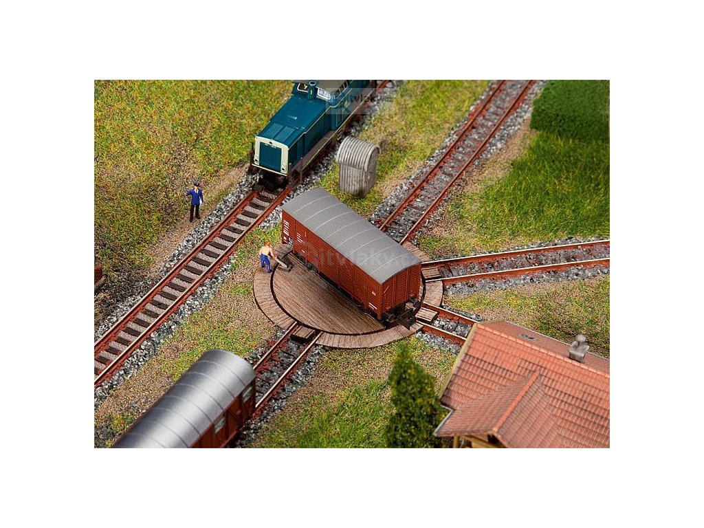 Laserem vyřezávaný model ručně ovládané točny s dřevěnými deskami a dvěma vývody pro rozdělování vagonů v malých železničních depech nebo továrnách s nákladní dopravou. Je poháněna přiloženým servopohonem. Stavebnice obsahuje také vložky pro koleje H0f a Z. Potřebná délka kolejí: 50 mm. Pro pohon použijte naše nové servořízení (položka 180725).
