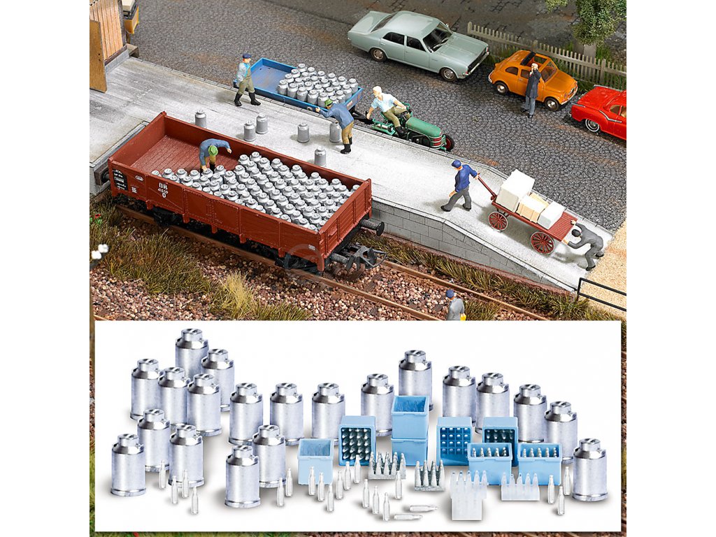 H0 - Plechovky na mléko a krabice na mléko / Busch 1145
