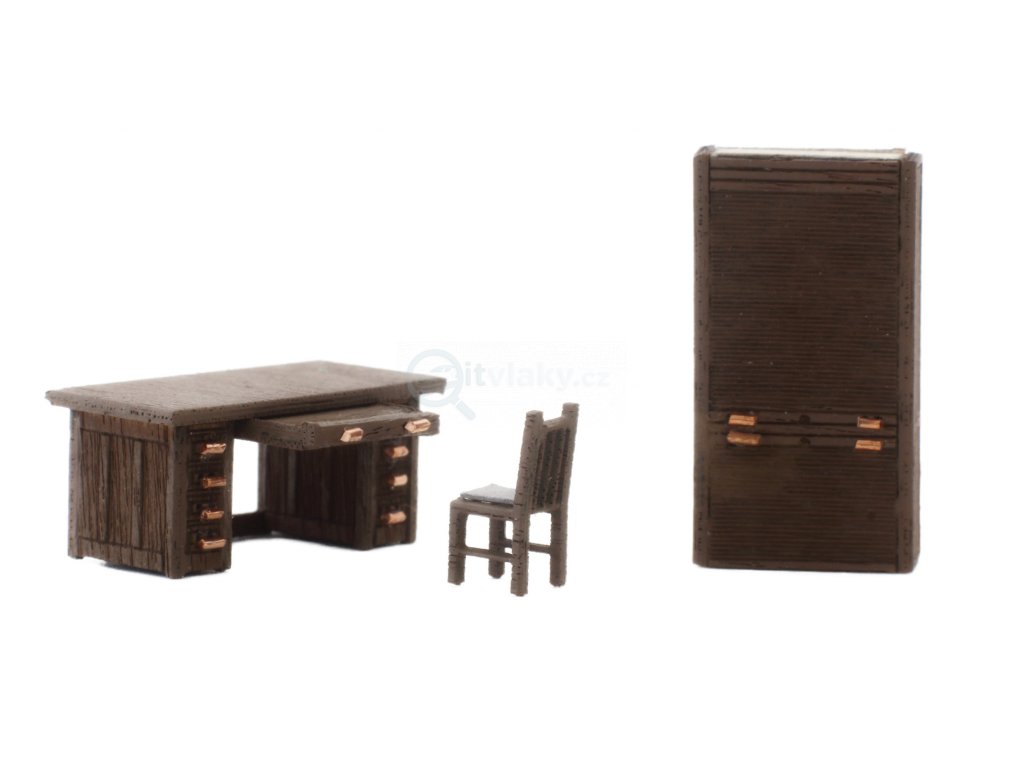 Set obsahuje: 2x skříň, 2x pracovní stůl, 2x židle.