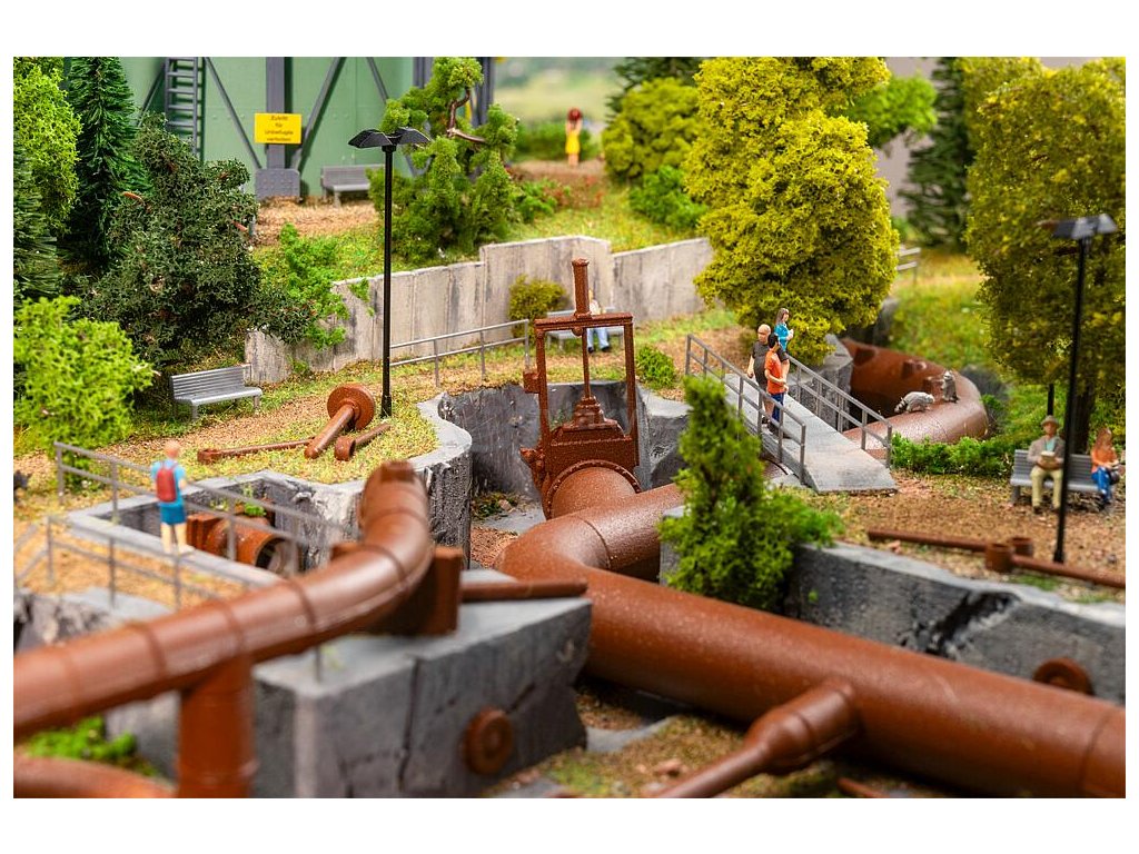 S touto všestrannou sadou potrubí je vytvoření realistické krajiny s těžkým průmyslovým stylem dětská hra! Různé délky, rovné i zakřivené trubky v různých průměrech vám umožní během chvilky vytvořit autentický potrubní systém ve vašem miniaturním světě. Volně kombinovatelné díly nabízejí nespočet možností a lze je také perfektně rozšířit pomocí sady „Plynoměr s trubkami“ (část 180327) a sady „Plynoměr s trubkami“ (část 130157). Vznikne tak působivý průmyslový objekt, který obohatí vaši modelovou krajinu!