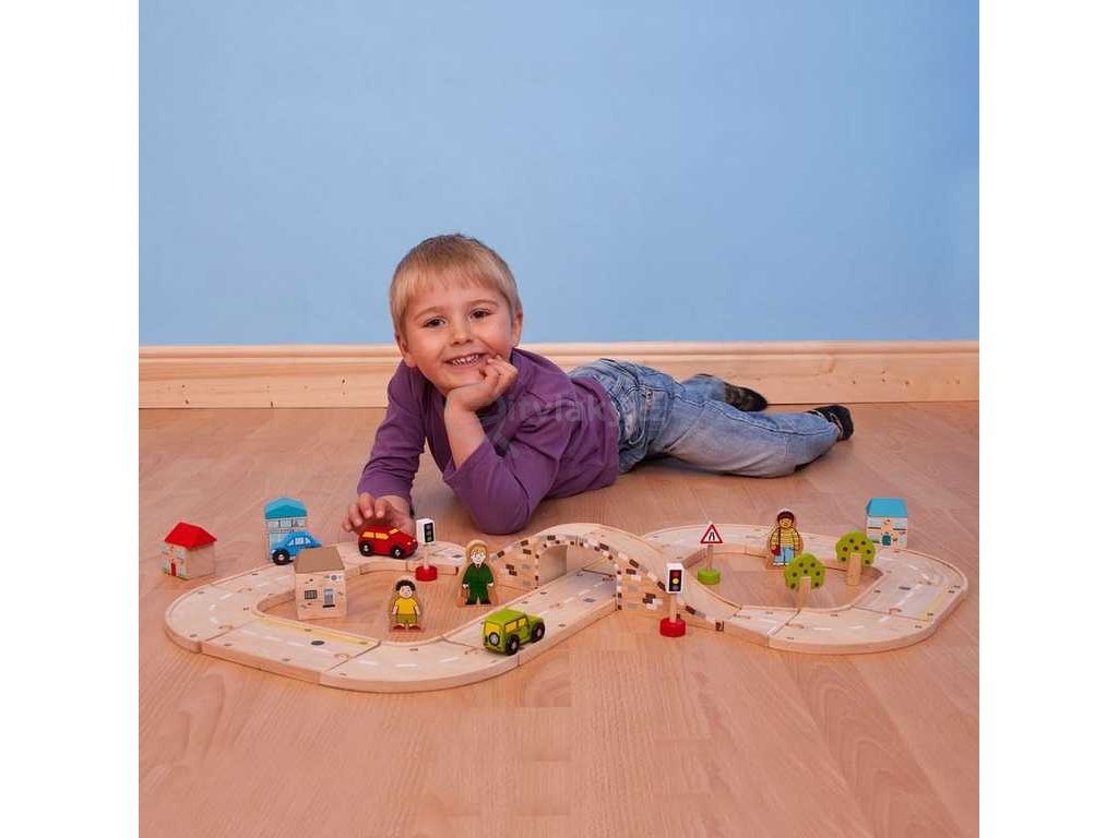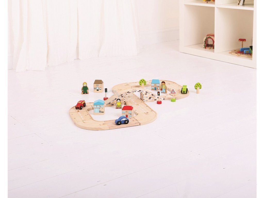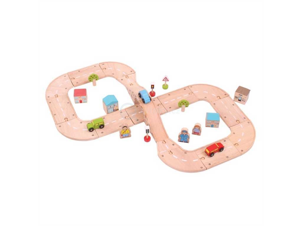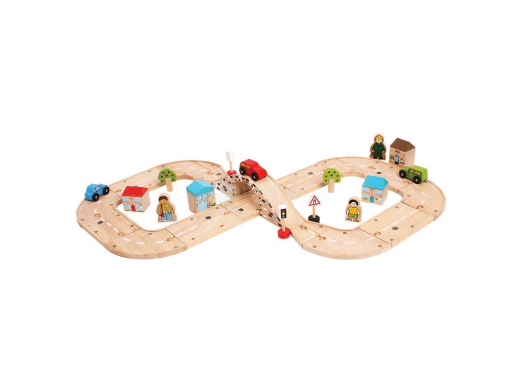 Tato fantastická sada osmička je ideální dárek pro vaše dítě. Obsahuje řadu dřevěných silníčních dílů a příslušenství, což umožňuje dostatek prostoru pro delší hru. Může být použita s jinými herními sety vláčkodráh Bigjigs Rail a tím i rozšířit různé herní aktivity. Ideální pro zvýšení zručnosti a koordinace dítěte.