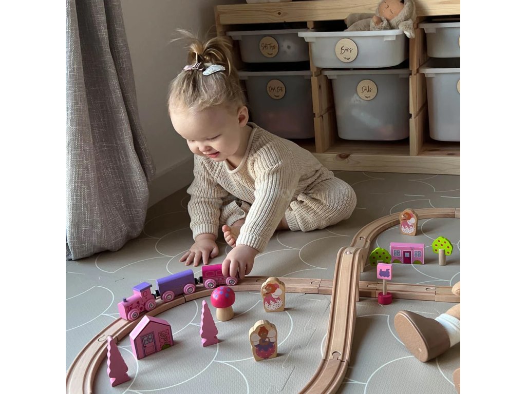 Originální vláčkodráha pro malé slečny s veškerým příslušenstvím v dívčích barvách.