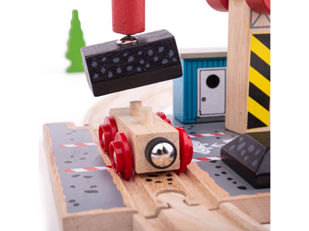 Toto krásné přístaviště zvýší dětskou představivost a hraní si na reálný svět! Set obsahuje nákladní loď, dřevěný jeřáb s magnetickou kladkou, vagónek s uhlím. Set slouží k překládání nákladu z vagónku na loď pomocí magnetického jeřábu.