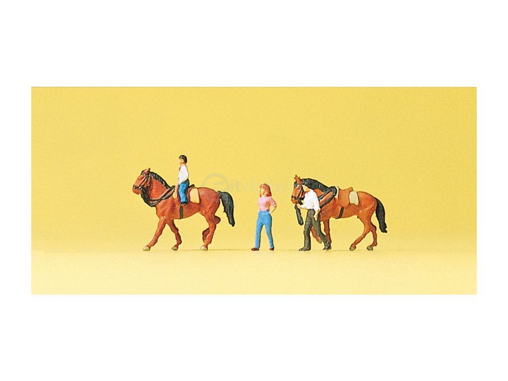 N - Hobby jezdec 2 koně a 3 figurky / Preiser 79183