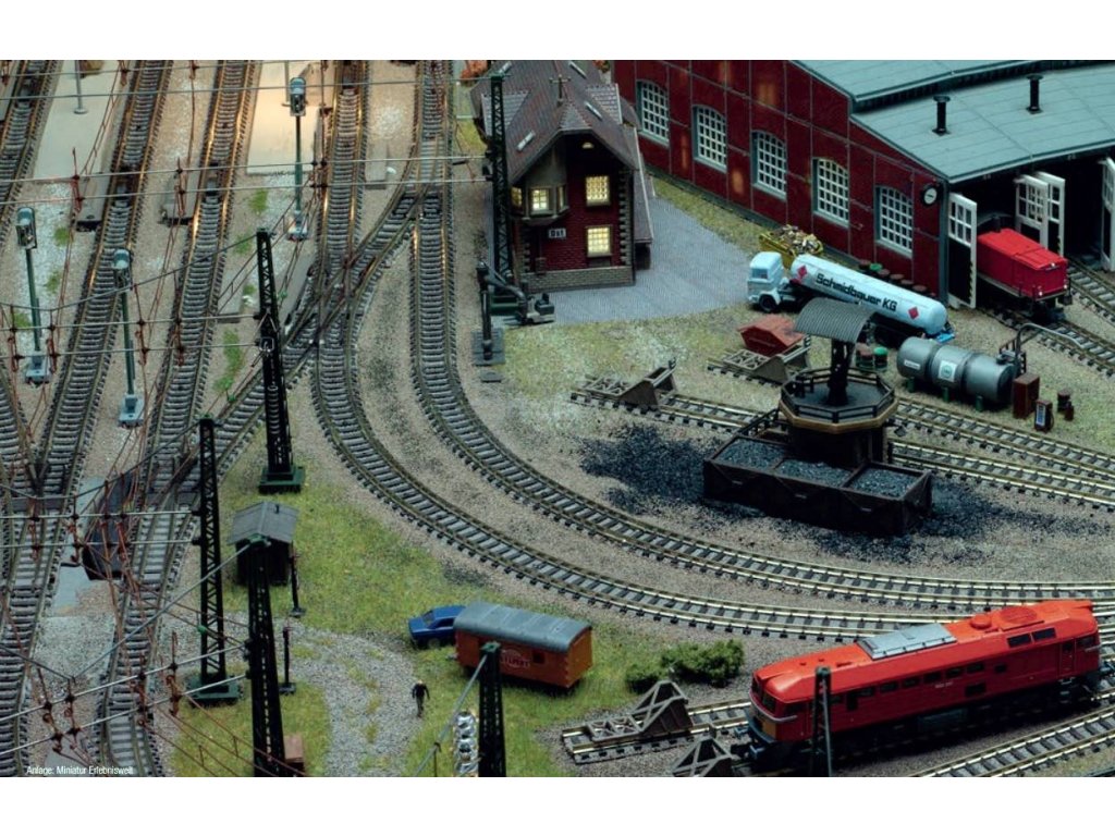 Perfektní imitace dřevěných pražců a štěrkového podloží. Podloží je z pružného plastu.