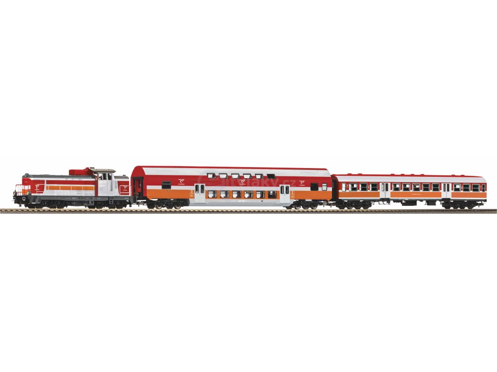 H0 - Start set - Dieselová lokomotiva Sm42 ,,Polregio,, + patrový vůz + osobní vůz, koleje s podložím, Ep. VI / PIKO 57114
