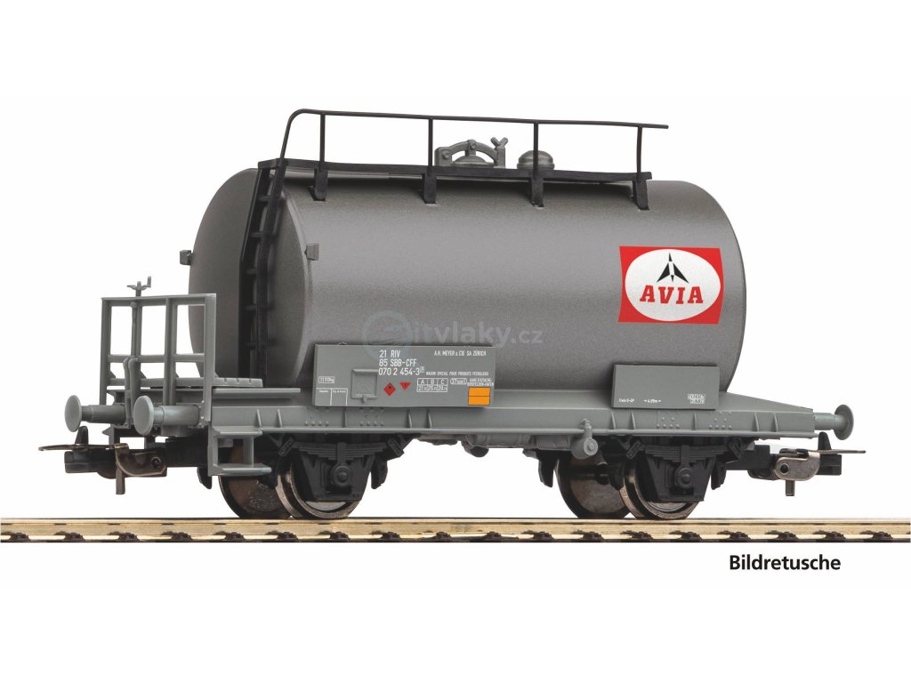 Dvouosý cisternový vůz ve verzi SBB AVIA v éře IV. Model zaujme robustní konstrukcí, detailním provedením a vynikajícími jízdními vlastnostmi.
