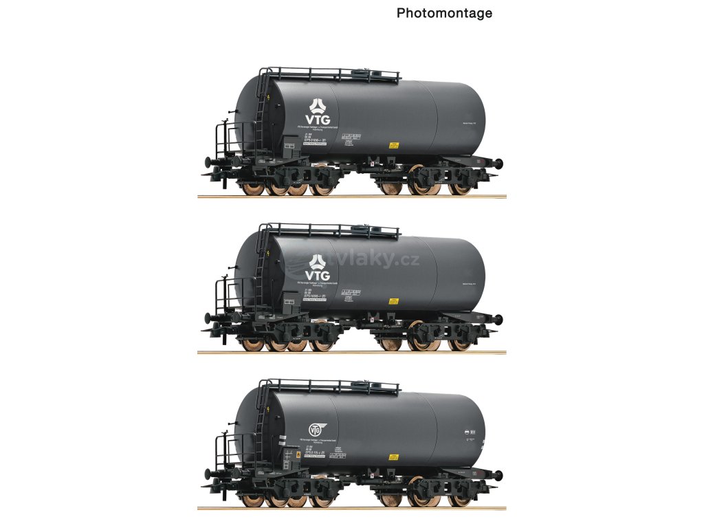 3 piece set: Tank wagons, VTG/DBWagenset mit drei 4-achsigen Kesselwagen der VTG eingestellt bei den Deutschen Bundesbahn. ■ Alle Wagen mit unterschiedlicher Bedruckung