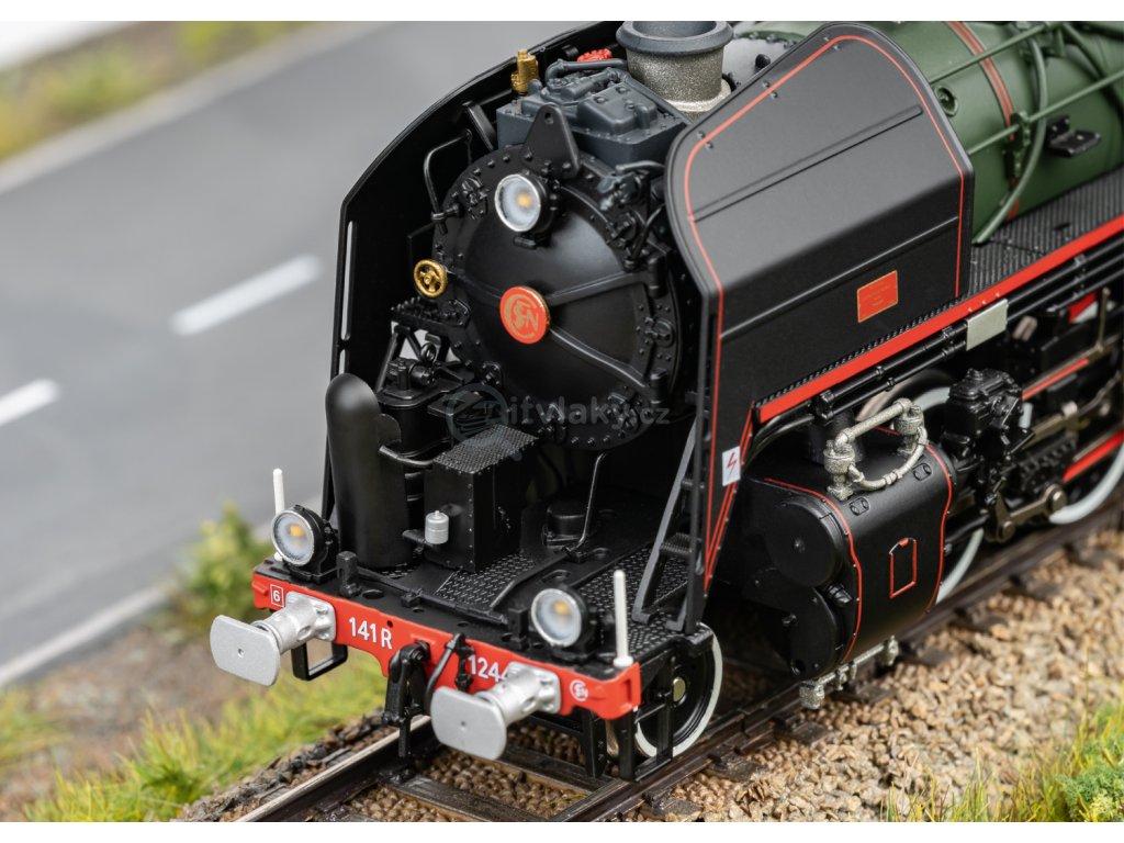 Parní lokomotiva řady 141.R s tendrem na olej.