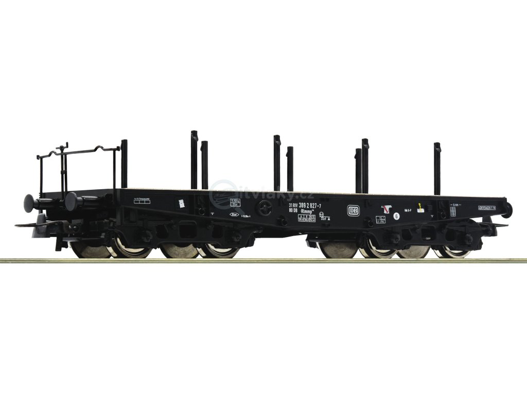 H0 - Plošinový vůz Rlmmp na těžké náklady DB, číslo 827-7 / Roco 46380