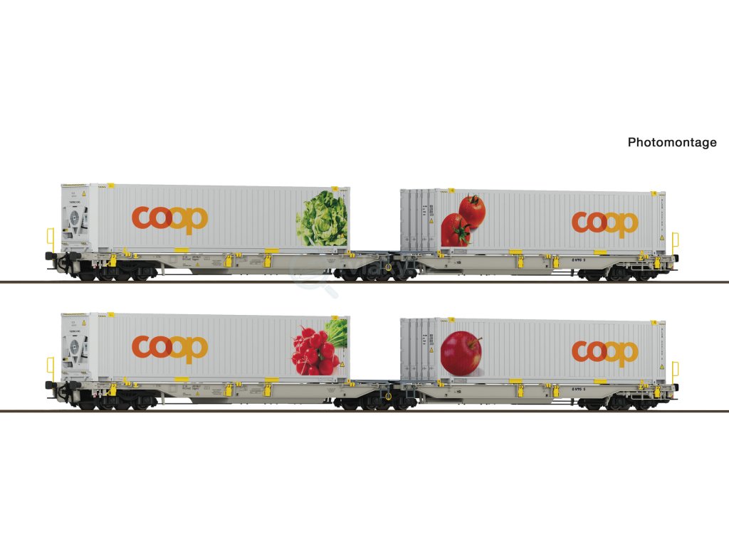 H0 - 2-dílná sada kontejnerových vozů T2000 + Coop #1 / ROCO 6600322