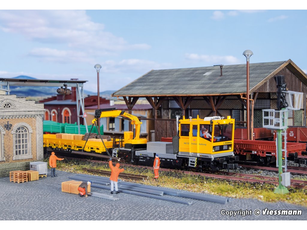 H0 - DCC/ZVUK drezína ROBEL 54.22 DB Netz s motorovým jeřábem, funkční model / VIESSMANN 2620