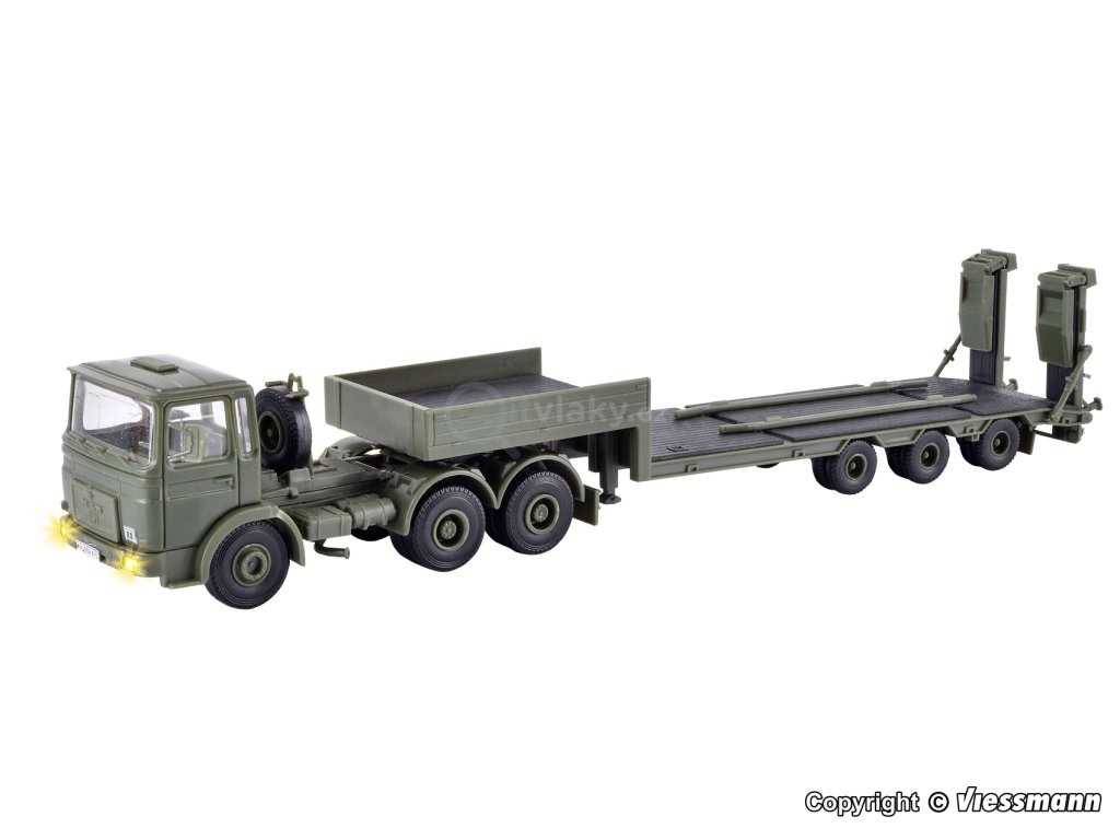 Funkční sada. S předem namontovaným předním osvětlením a zadním osvětlením v přívěsu. Údaje o prototypu: Částečně militarizované přední řízení MAN F8. MAN 26.321 DFS, 235 kW/320 k, 6x4, celková hmotnost 8 t, nízký nakladač Meiller - přívěs TS 3, užitečné zatížení až 37 t.