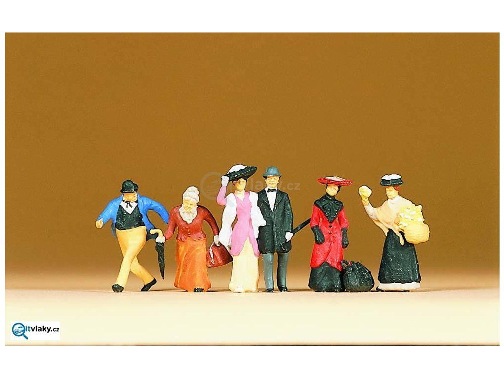 H0 - Cestující a postavy r.1900, 6 figurek / Preiser 12138