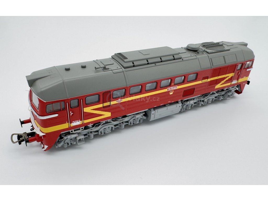 Druckvariante der V 200 als T679.1 der ČSD in Epoche IV. Das PIKO Modell der T679.1 zeichnet sich durch eine exakte Umsetzung aller relevanten Details seines Vorbildes aus und überzeugt durch feinste Lackierung und Bedruckung, angesetzten Griffstangen, scharf gravierte Drehgestellblenden, Maschinenraumeinrichtungen, serienmäßig eingebaute, mit einem PluX22-Decoder digital schaltbare Führerstands- und Maschinenraumbeleuchtung und fahrtrichtungsabhängig funktionierende Schlusslichter. Der starke fünfpolige Motor sorgt mit zwei Schwungmassen für hervorragende Fahreigenschaften. Das Modell besitzt werkseitig einen PIKOSound-Decoder und einen größtmöglichen Lautsprecher. Bremsschläuche zum Nachrüsten liegen bei.
