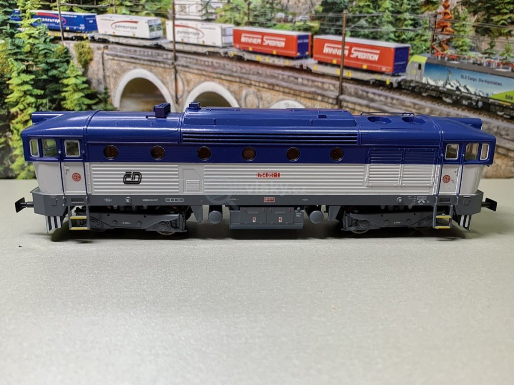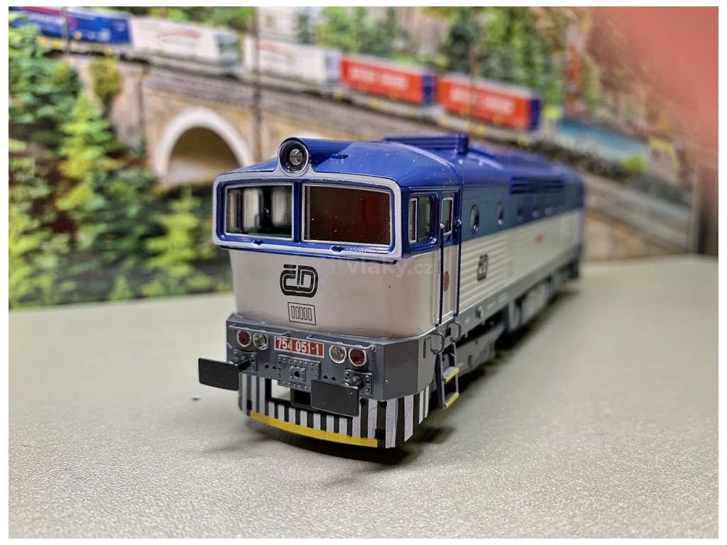 Diesel-elektrická lokomotiva řady 754. Model je vybaven motorem se setrvačníkem, přepínatelným osvětlením, dle směru jízdy, zvlášť zapínatelným reflektorem (pouze digitál), možná změna jasu reflektoru přepínačem na DPS, osvětlením stanoviště strojvedoucího. Lokomotiva je vybavena rozhraním Plux22.