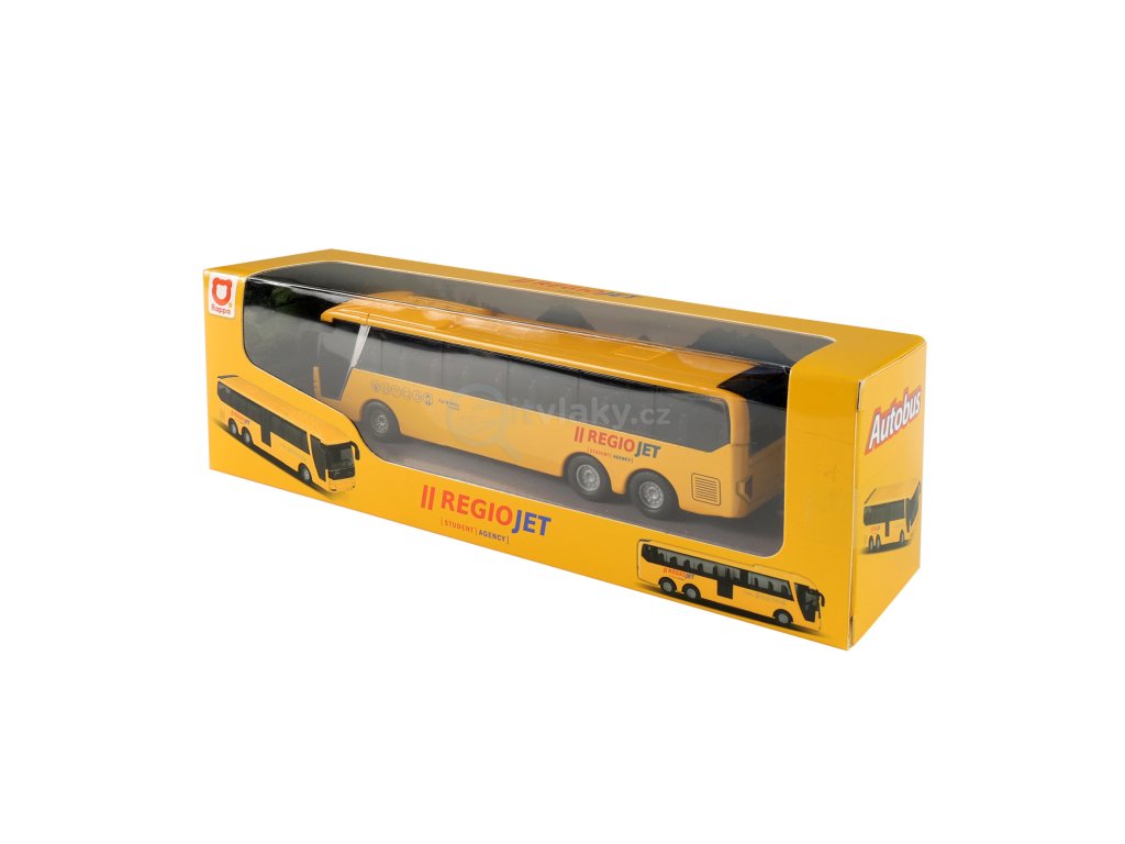 Máš rád cestování? Nastup do ikonického žlutého autobusu RegioJet a vydej se za dobrodružstvím! Tento detailně zpracovaný model má kovové tělo s plastovými prvky, jezdí na volný chod a díky své délce cca 15 cm se skvěle hodí do každé sbírky nebo jako hračka pro malé cestovatele.