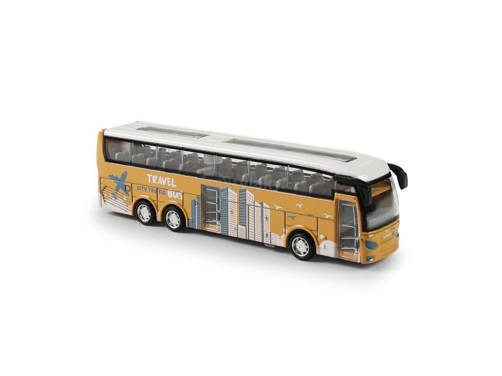 Nastup si do autobusu a cesta za dobrodružstvím může začít! Tento mini kovový autobus jezdí na volný chod, má otevírací dveře, kovové tělo s plastovými prvky a jeho délka je 12 cm.