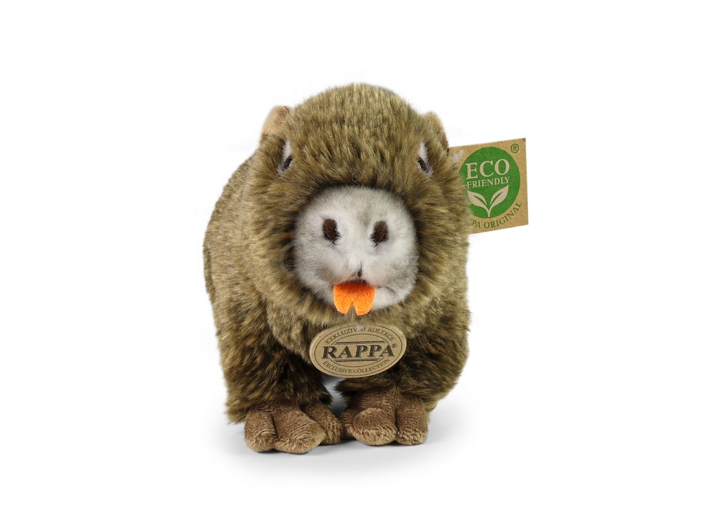 Plyšová nutrie měří 24 cm a díky těm nejkvalitnějším materiálům se řadí do Exkluzivní kolekce plyšových hraček značky Rappa. Díky ručnímu zpracování každého kusu navíc vypadá jako živá. Proč označení ECO-FRIENDLY? Rappa si je vědoma všech dopadů na životního prostředí, zaměřuje se na udržitelnost a omezení používání plastů na minimum. Proto je výplň hraček vyrobena z recyklovaných materiálů, zejména PET lahví. Ta je však zcela nezávadná a vhodná i pro děti od narození. FUN FACT: Věděli jste, že nutrie mají zvláštně oranžové zuby díky vysokému obsahu železa ve sklovině?Doplňkové parametry
